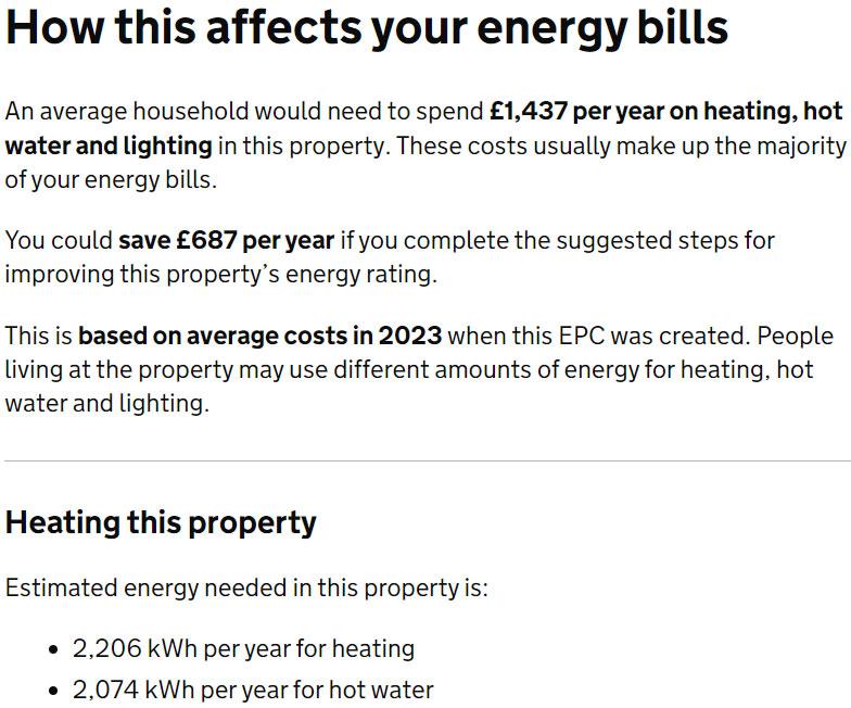 The costs, savings and ‘energy needed’ are based on the information captured in the EPC assessment, including the size of the property, the type of heating and lighting present and how well the property is insulated.