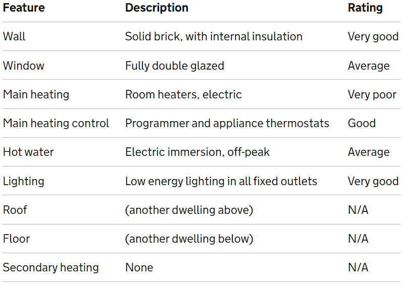 Each feature gets a rating based on how energy efficient it is – Very Poor, Poor, Average, Good, Very Good. Ratings are not based on how well the feature actually works or its condition.
