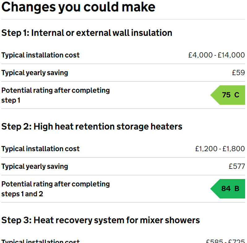 This isn’t an exact science, there are over 28 million households across the UK and we all use our heating and lighting differently but it does give a good indication of what savings could be made if you were to complete the suggested steps for improving this property’s energy rating, found further down the certificate.
